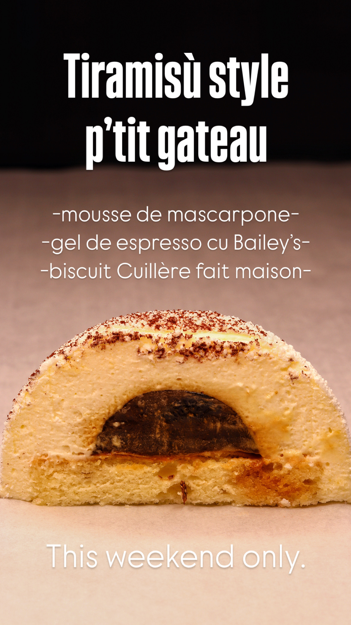 3. The ‘misu *2buc. – Tiramisù inspired, cu mousse de (cel mai fin) mascarpone, gel de espresso (single-origin, ofc 😉) cu Bailey’s și blat de biscuit Cuillère (the O.G. pișcot), totul acoperit de glazură velvet albă și a splash of cocoa 🤩. Doar-la-TRYP.