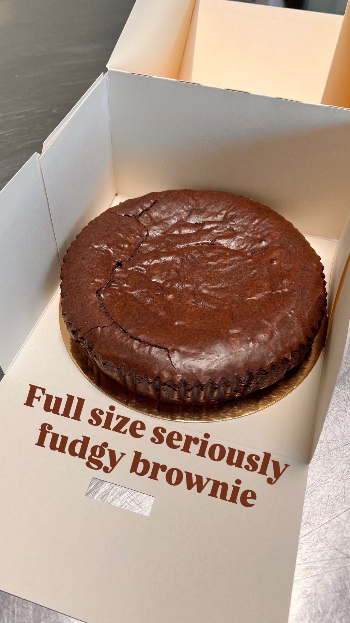 2. Full size seriously fudgy brownie 600g+, un fel de chocolate heaven for the chocolate lover (și cine nu e?!), bogat în ciocolată belgiană, decadent, dens și cremos. Deep, pure chocolate flavor that melts in your mouth…